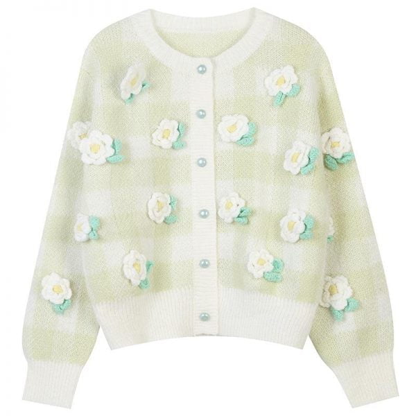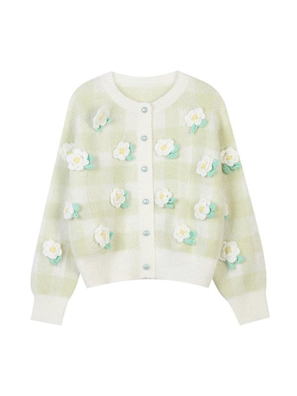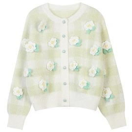 Women’s Cardigans Round Neck Long Sleeve Flower Pearl Button Winter Coats