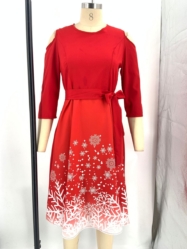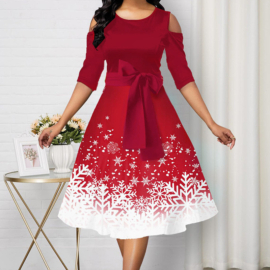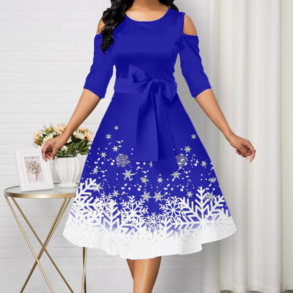 Women’s Christmas Round Neck Strapless Snowflake Swing Dress