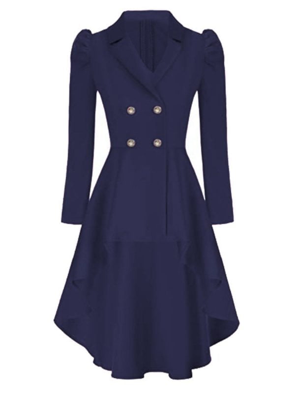 Women’s Coats Lapel Long Sleeve Split Double Breasted High Low Jackets