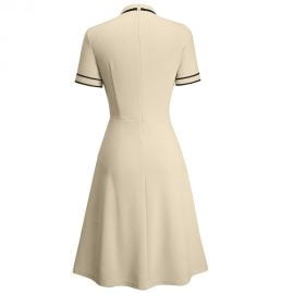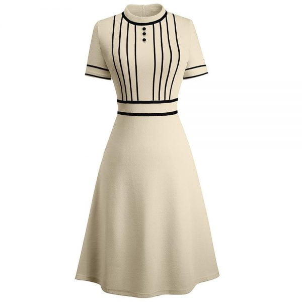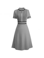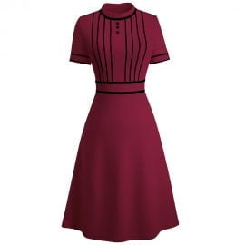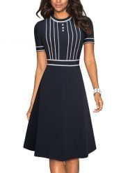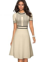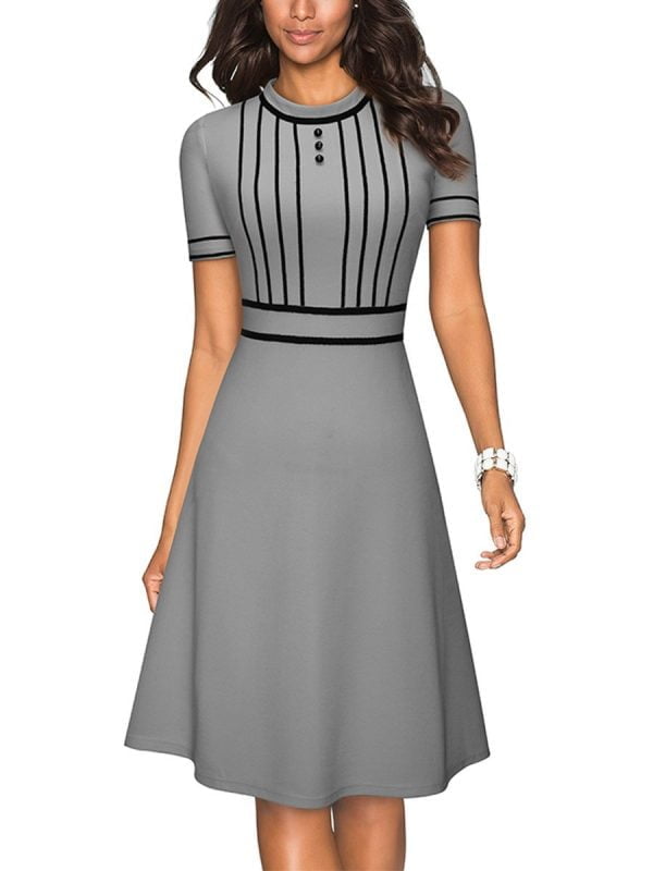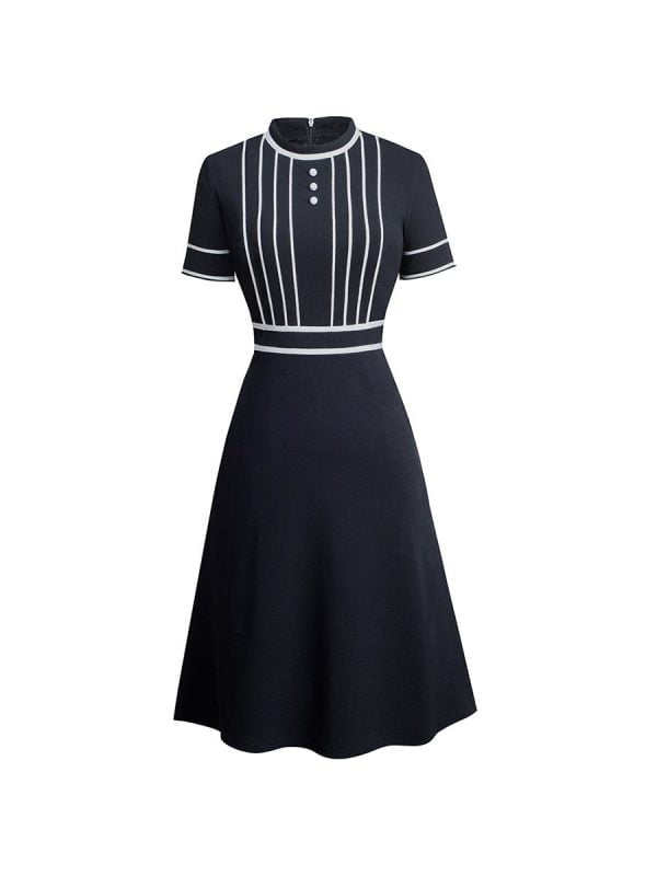 Women’s Dress Contrast Stitching Short Sleeve Midi A-line Swing Dress