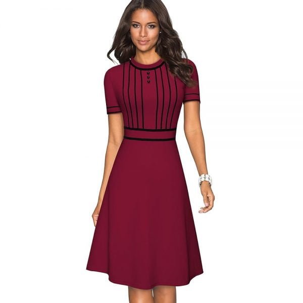 This dress flatters the body so beautifully it accentuates your curves while hiding your stomach closure; The waist of this dress is elastic and suitable for a maternity dress; Contrast Stitching design makes it very distinctive;