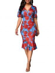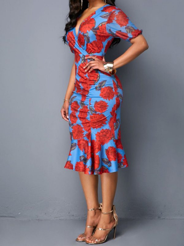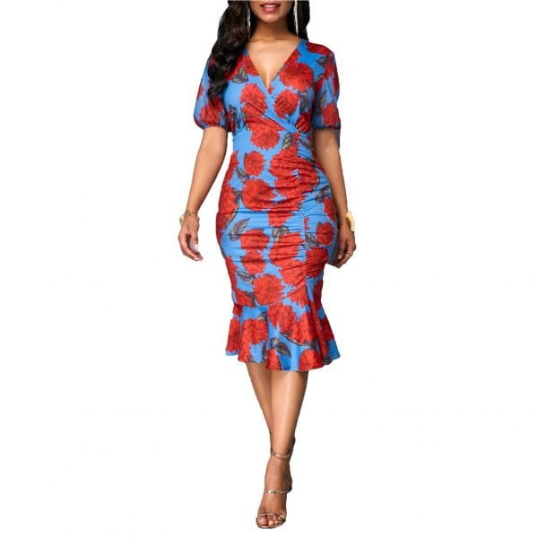 The unique print covers the entire dress. making this dress exquisite and fashionable; The slim design and loose ruffle hem give people a different sense of beauty;
