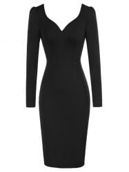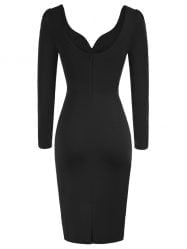 Women’s Dress Deep V-neck Long Sleeve Backless Midi Pencil Dress