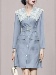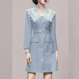 The unique lace lapel design makes this dress fashionable and cute; The combination of the ring design of the belt and the single-breasted design on the dress adds to the retro atmosphere of the dress;
