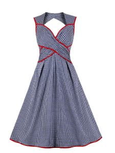 Women’s Dress Retro A-line Sleeveless Backless Lace-up Bow Cross-tie Midi Dress