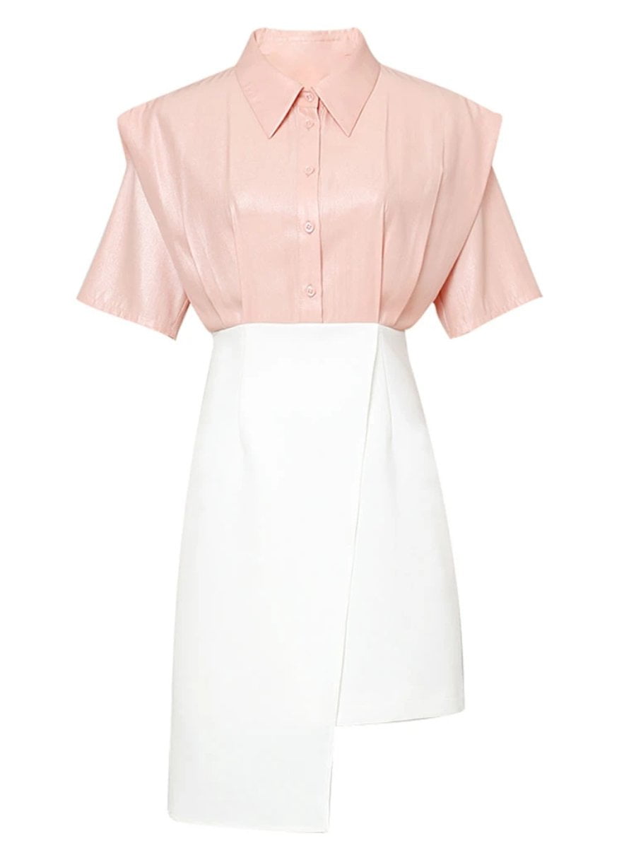 Women’s Dress Two Piece Stitching Turn Down Collar Slim Irregular Dress