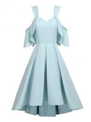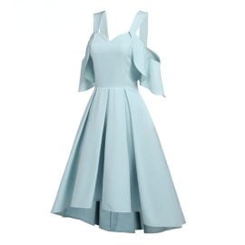 Women’s Dresses Off-the-shoulder Butterfly Sleeve Aline High Low Pleated Midi Dress