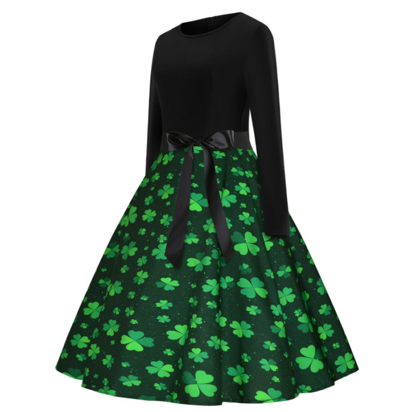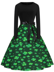 Women’s Dresses Round Neck Long Sleeve Four-leaf Clover Print Aline Dress