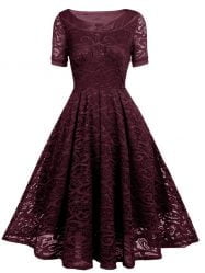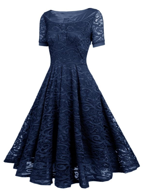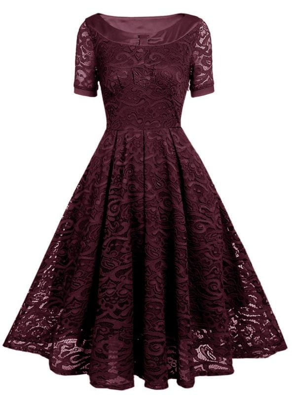 1950s Dress Women’s Lace Dress Solid Color Elegant A-Line Dress