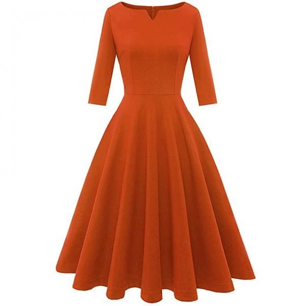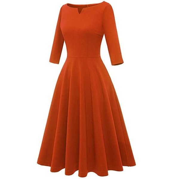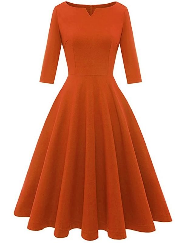 Women’s Dresses Solid Color Three Quarters Sleeves Midi Swing Dresses