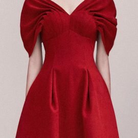 Women’s Dresses V-neck Pleated Sleeve High Waist Maxi Prom Dresses