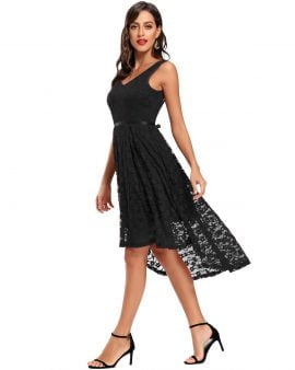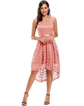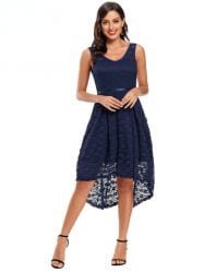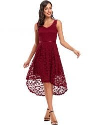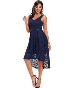 Women’s Dresses Vintage V-neck Lace Sleeveless High Low Midi Dresses