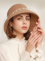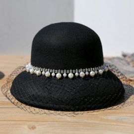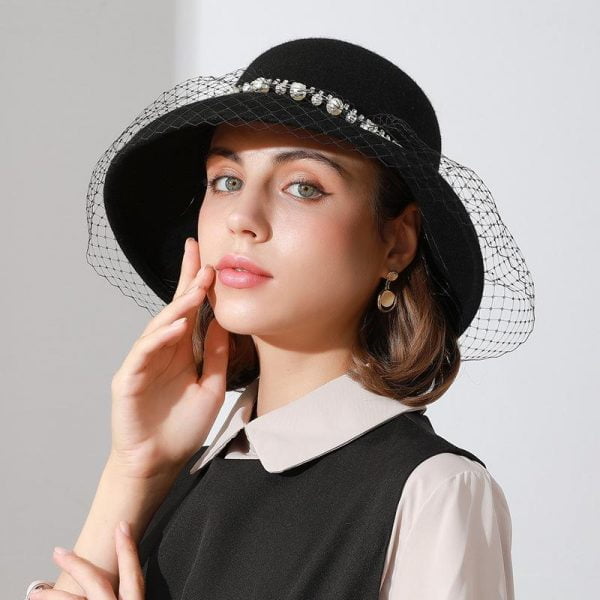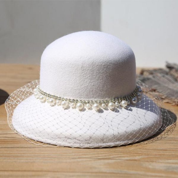 Women’s Hats Retro Banquet Dome Wool Pearl Lace Bucket Hats