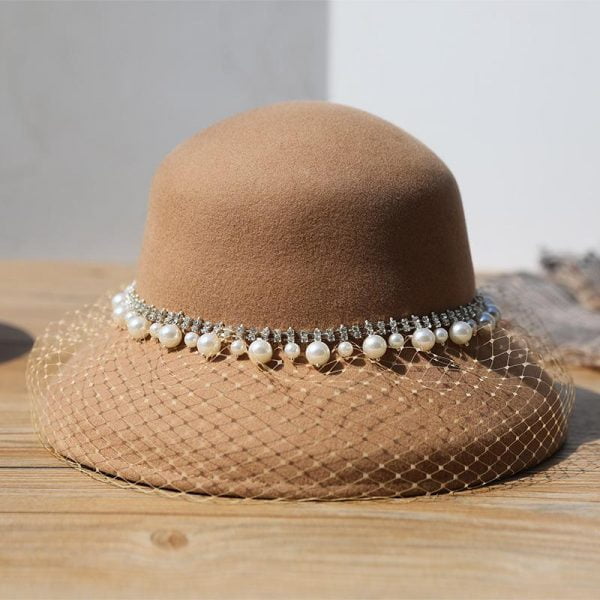 The streamlined brim can distract the attention of the face so as to modify the face shape. making it look small and exquisite; Unique pearl beaded decoration. retro and elegant; The high-quality wool is warm and thick;