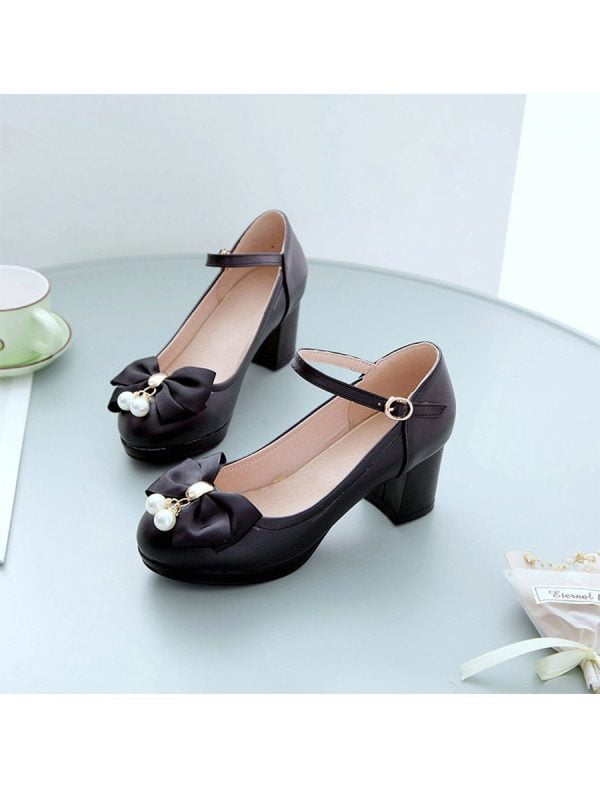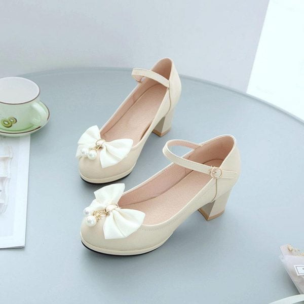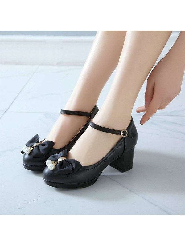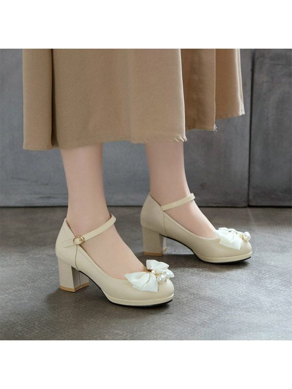 Mary Janes Pumps Elegant Double Strap Bowknot High Heels