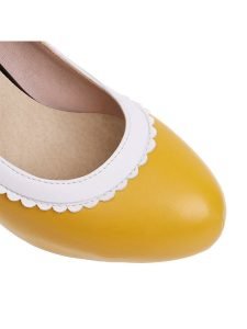 Mary Jane Shoes Round Toe Bowknot Lace Patchwork Shallow High Heels