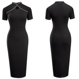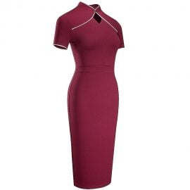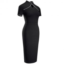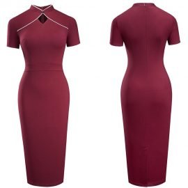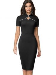 Women’s Improved Cheongsam Retro Stand-up Collar Hollow Midi Pencil Dress