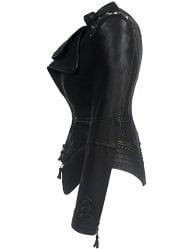 The comfortable slim-fit overcoat is designed to easily flatter any figure for your everyday wear. This unique faux leather coat for women is perfect for motorcycles.