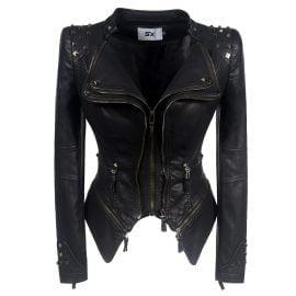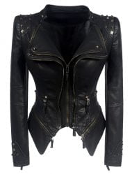Women’s Jackets Leather Zipper Studded Faux Plus Size Biker Jacket
