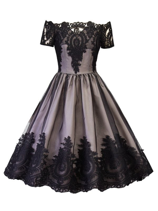 The lace embroidery on the neckline and hem makes this skirt more fashionable while echoing each other; The off-shoulder and swing design show your body curve. making you look more sexy and elegant;