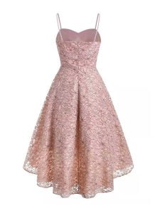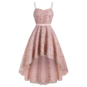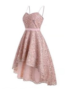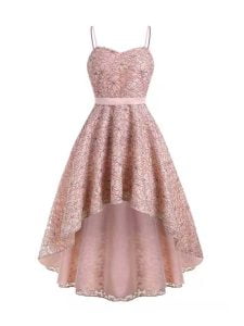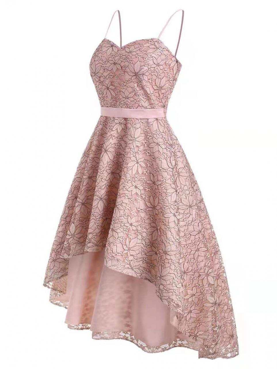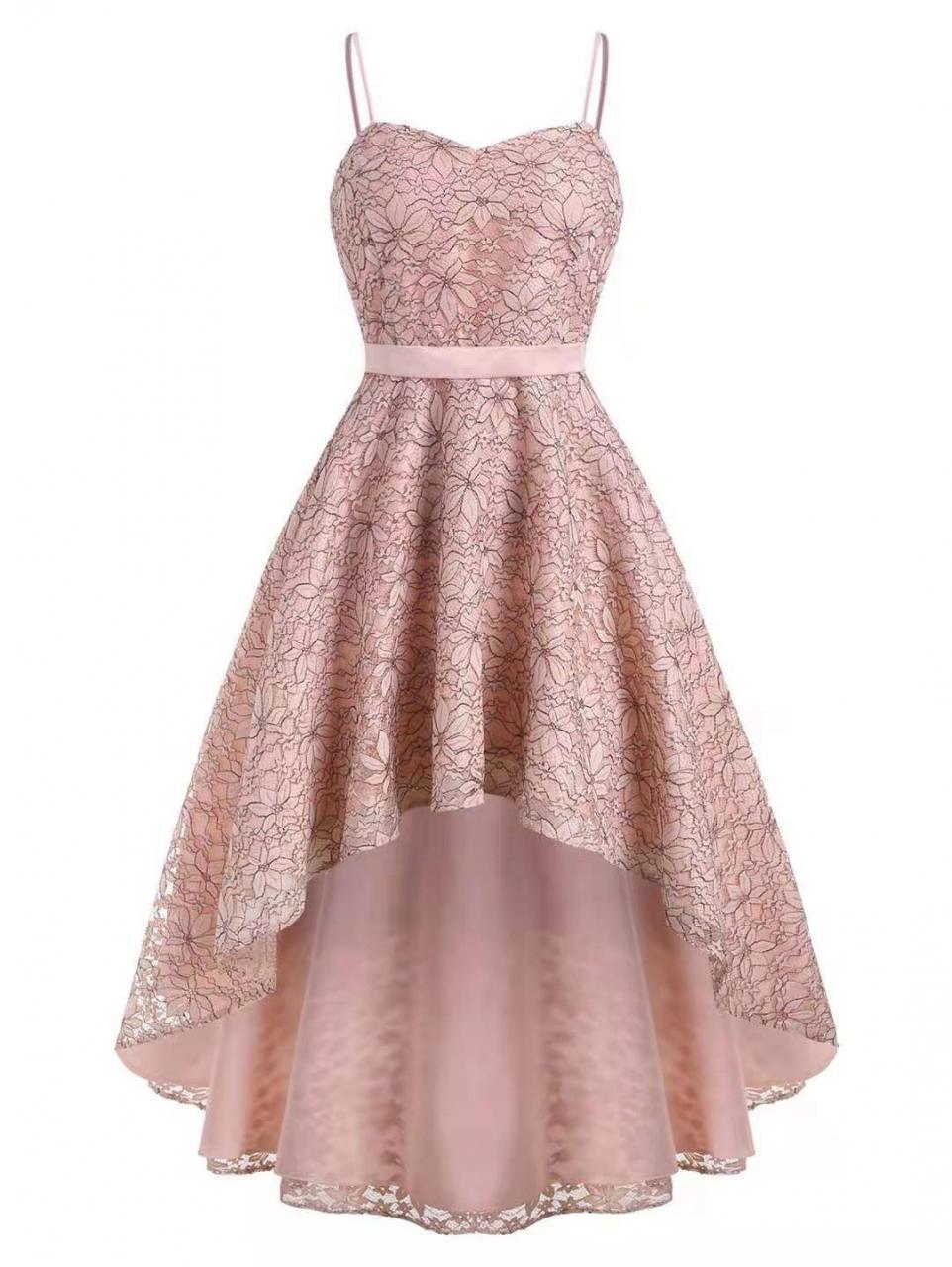 Women’s Pink Dresses Spaghetti Strap High Low Hem Elegant Lace Dresses