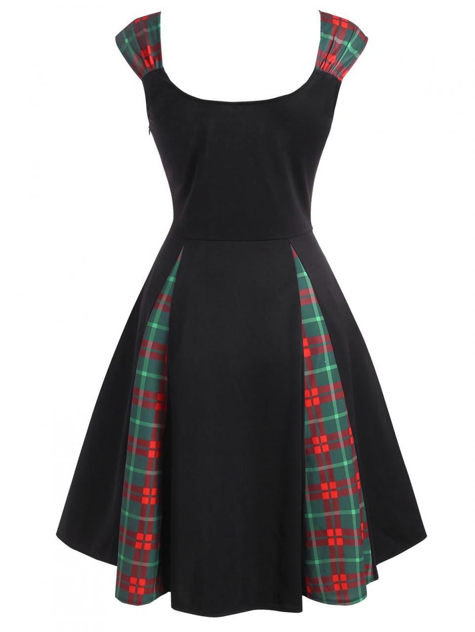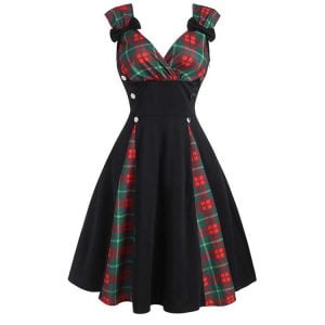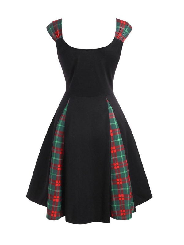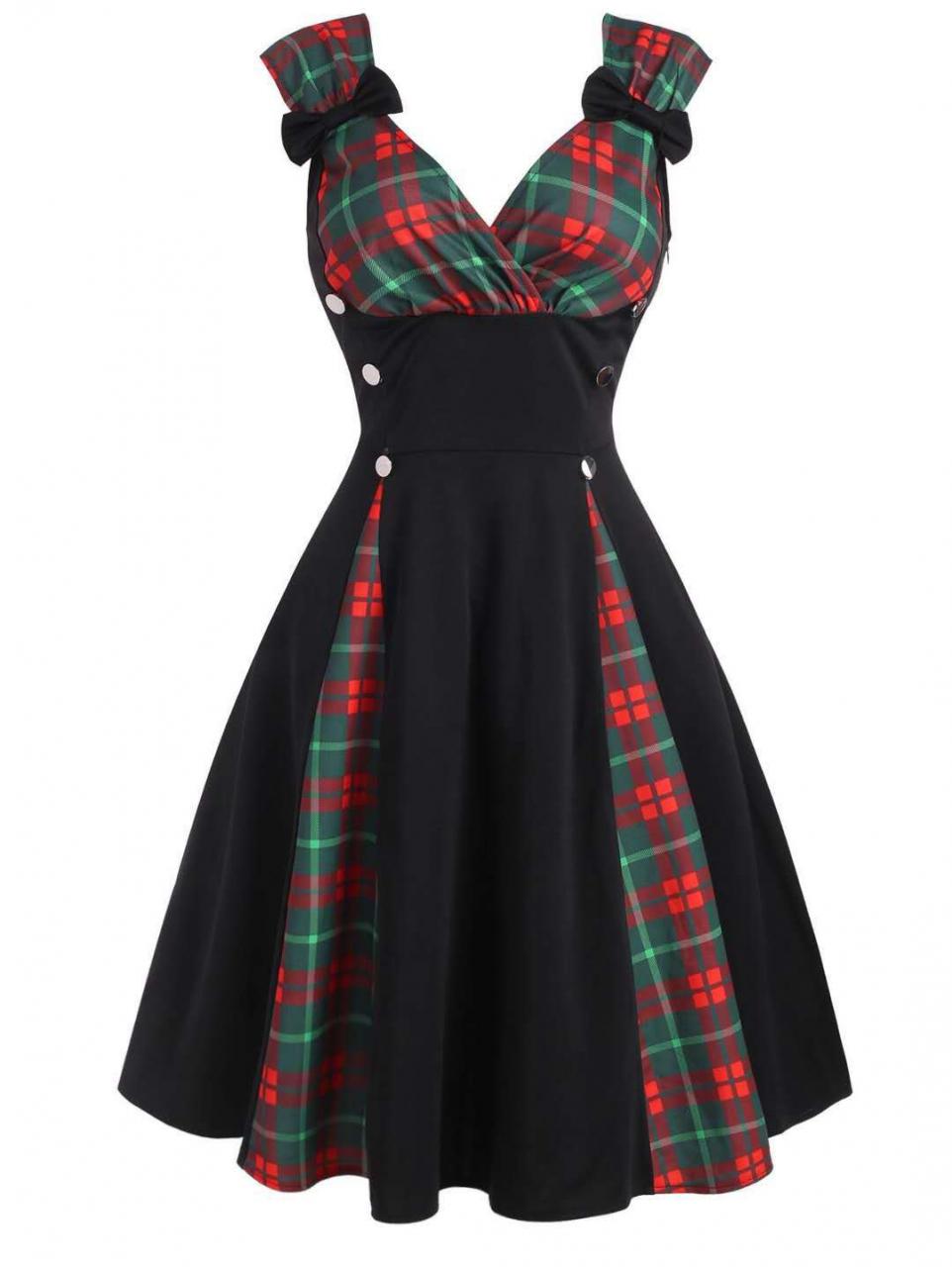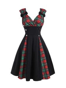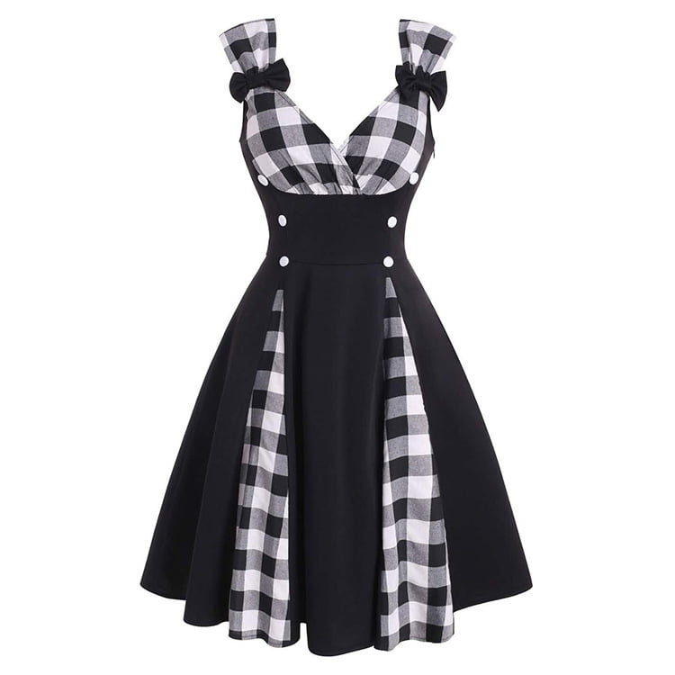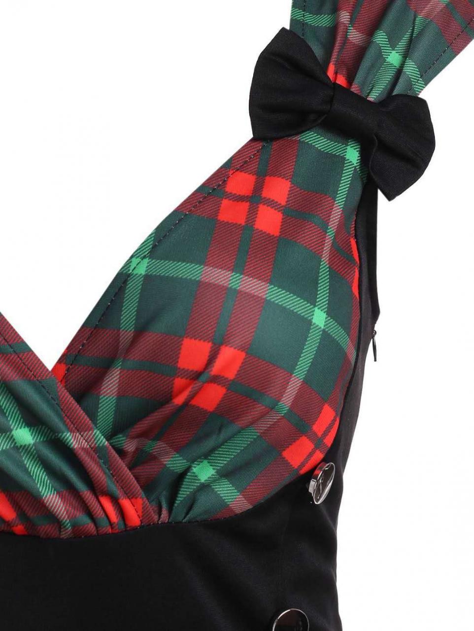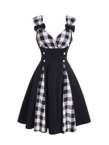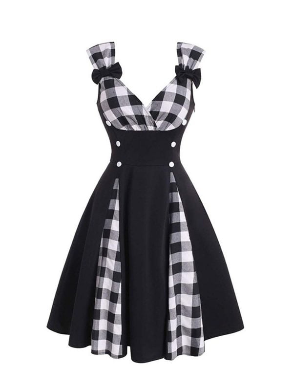 1950s Dress for Women Bowknot-neck Plaid Dress