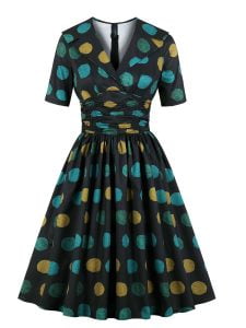 Women’s Polka Dot Dresses V-Neck Retro A-line Dresses