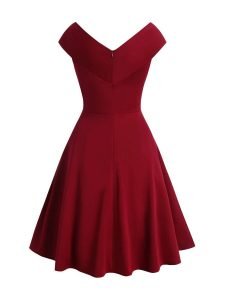 Women’s Prom Dresses V-Neck Bowknot Elegant Burgundy Dresses