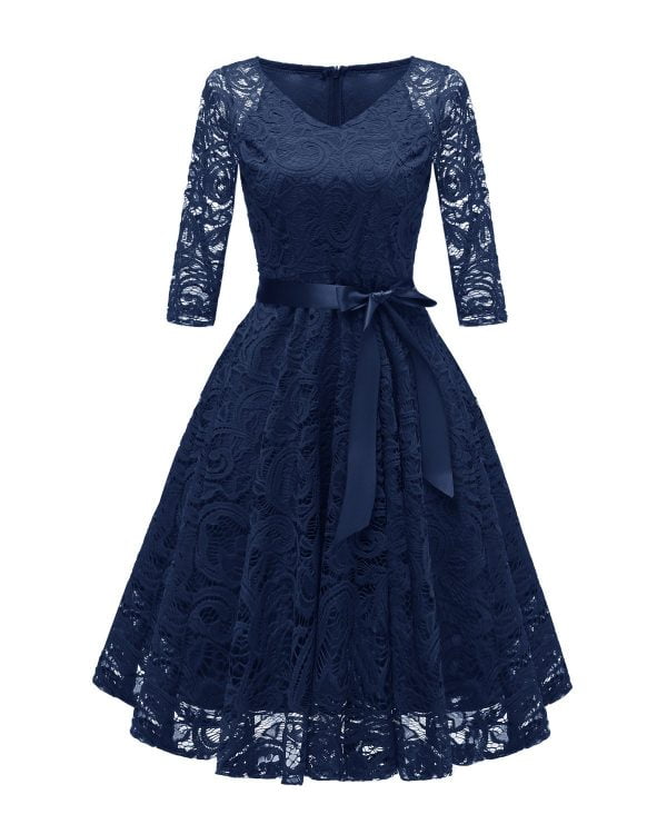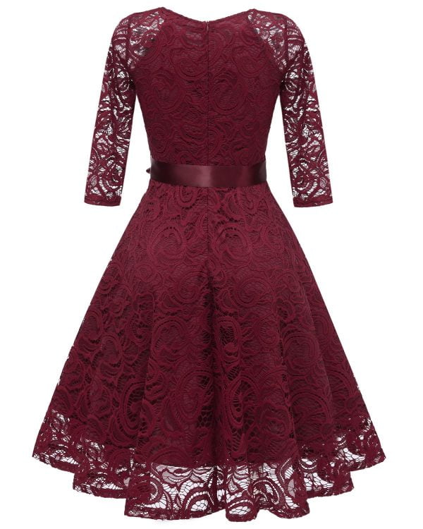 1950s Dress Women’s Lace Dress Solid Color Elegant A-Line Dress