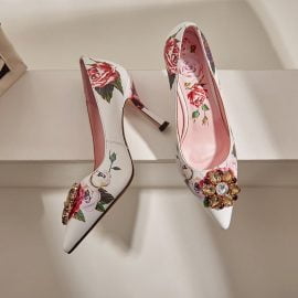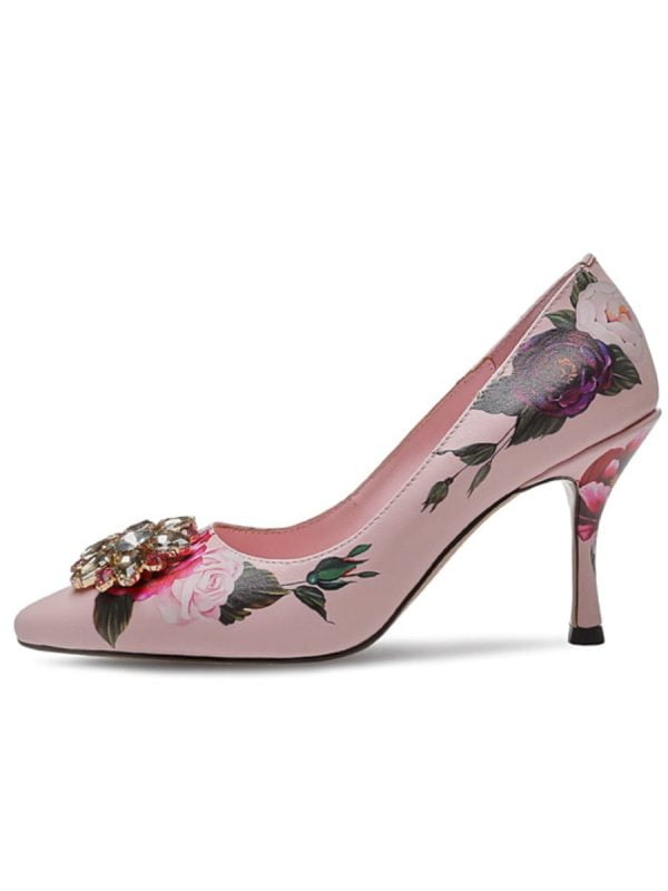 Women’s Pumps Vinatge Rose Printed Rhinestone Stiletto Heel Shoes