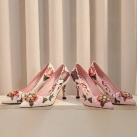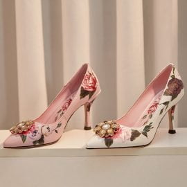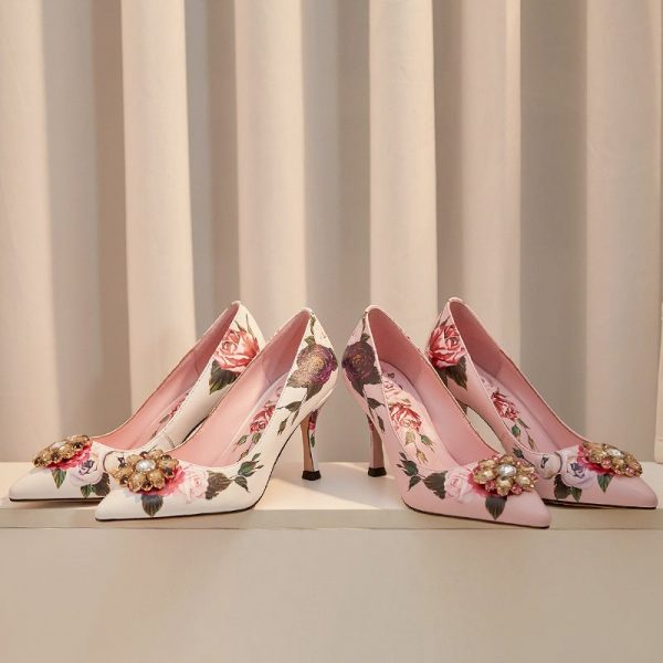 The rose print and rhinestone decoration make these shoes fashionable and luxurious; the classic pointed high heels will make your feet more compact and exquisite after wearing;