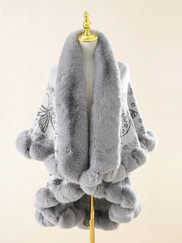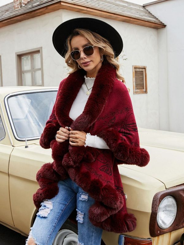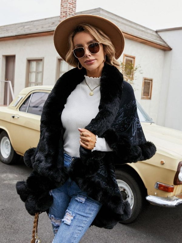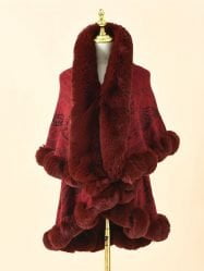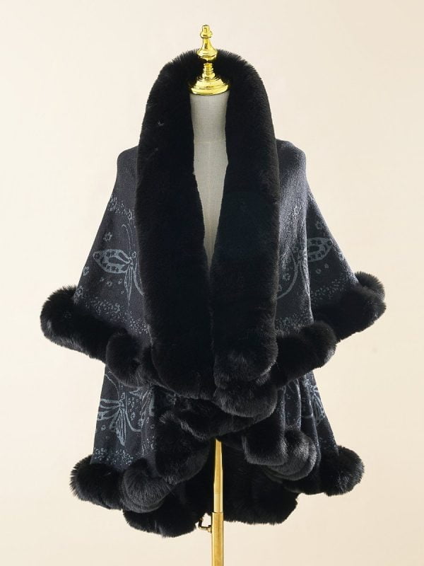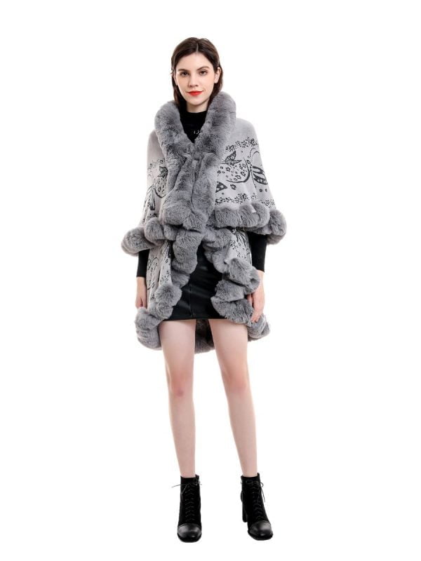 Women’s Shawls Loose Fox Double-layer Fur Collar High Low Coats