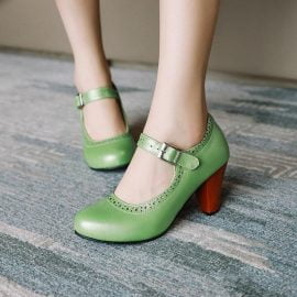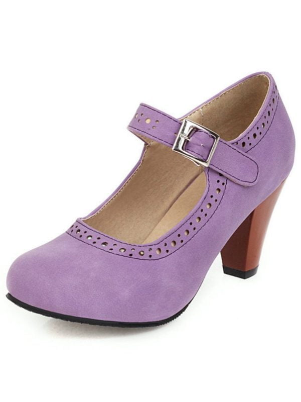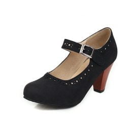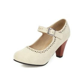Women’s Shoes Round Toe Shallow Buckle Hollow Block Heel Shoes