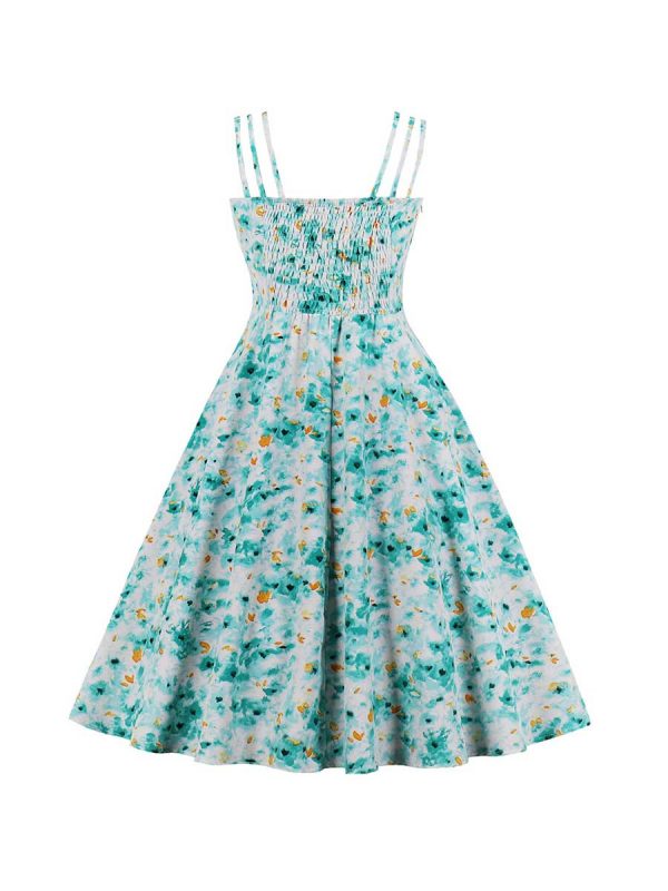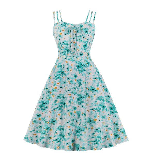 Categories: 1950s Dresses, Floral Dress, Spaghetti Strap Dress, Swing Dresses