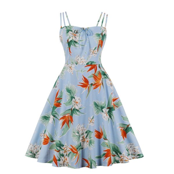Women’s Spaghetti Strap Dress Vintage Floral Dress