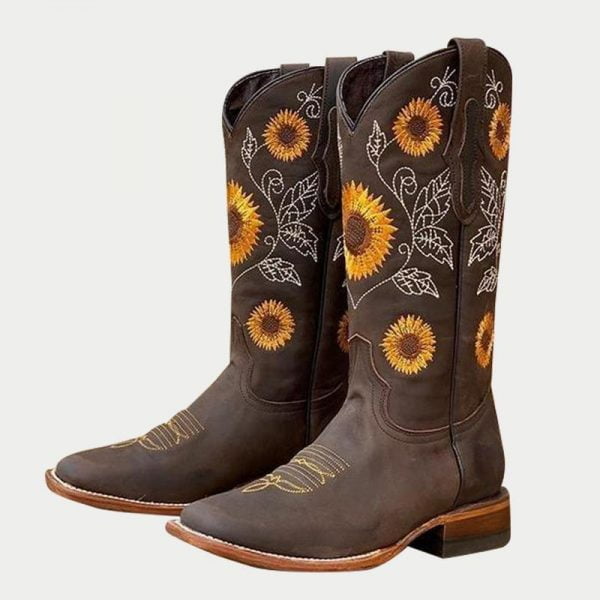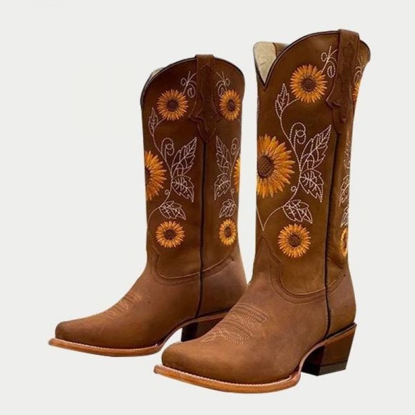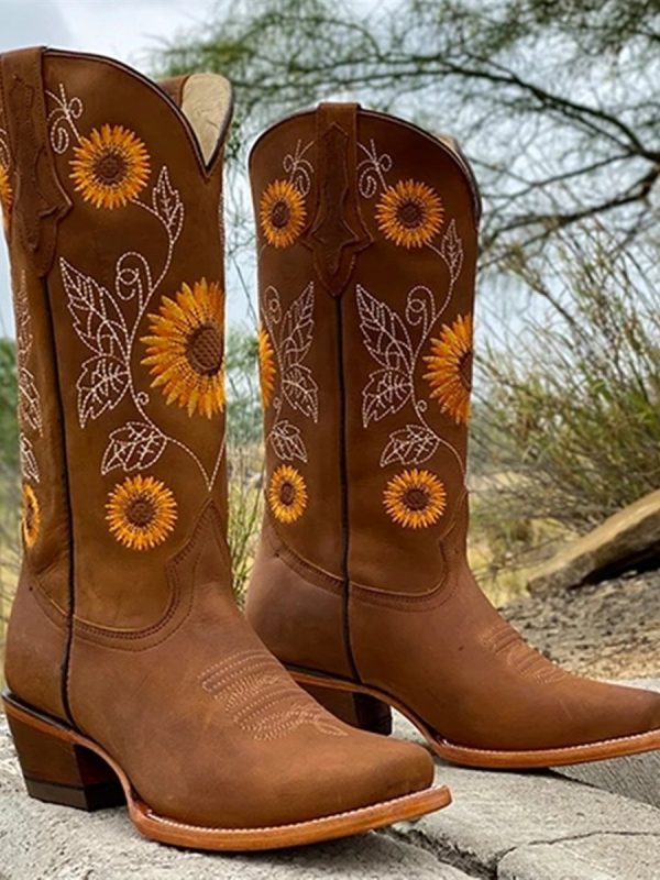 Women’s Sunflower Boots Ethnic Style Pointed Toe Block Heel Boots