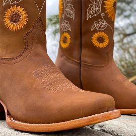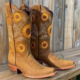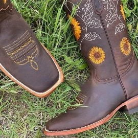 Or should I say the “Happy Flower” because I’m pretty sure this cowgirl western boot made you smile. This is a classic snip toe cowgirl boot. perfect for your country outings having fun. date nights. or country weddings. It features a gorgeous embroidered Girasol design. butter-soft smooth teal pig lining. and a traditional leather insole. Just like a sunflower. you’ll sure stand out from the crowd.