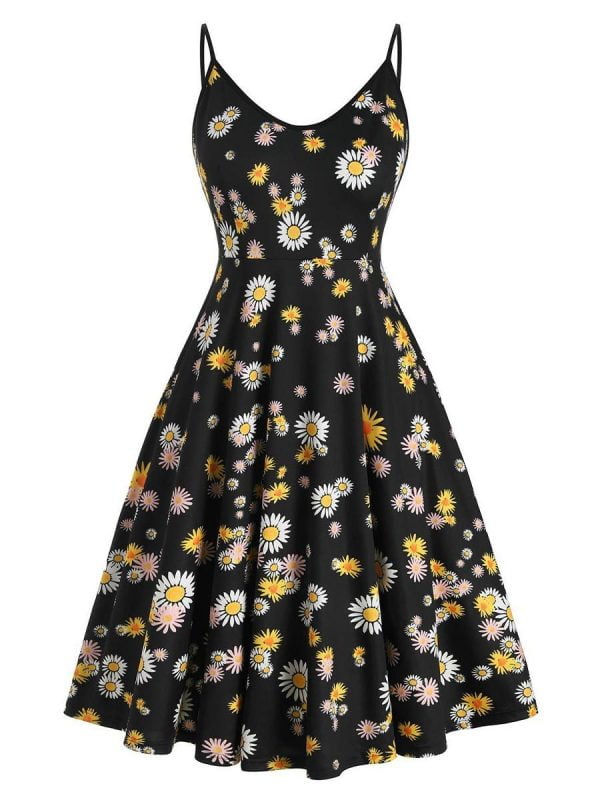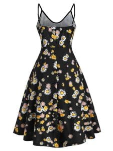 Women’s Sunflower Dresses Summer Midi Spaghetti Strap Dresses