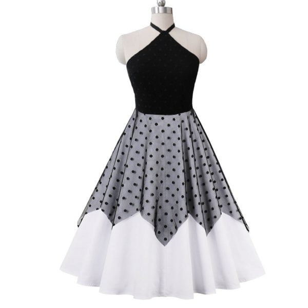 Hepburn Style Retro Halter Neck 50s Pleated Dress
