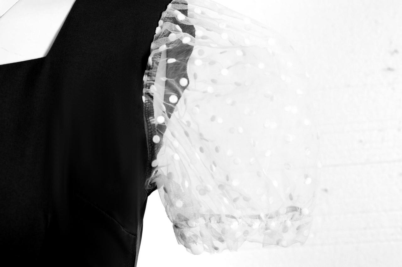 Features: solid color patchwork design, O-neck, short mesh sleeves, and the frenulum on the back will make you look more beautiful, fashion and elegant;