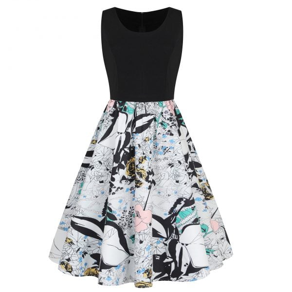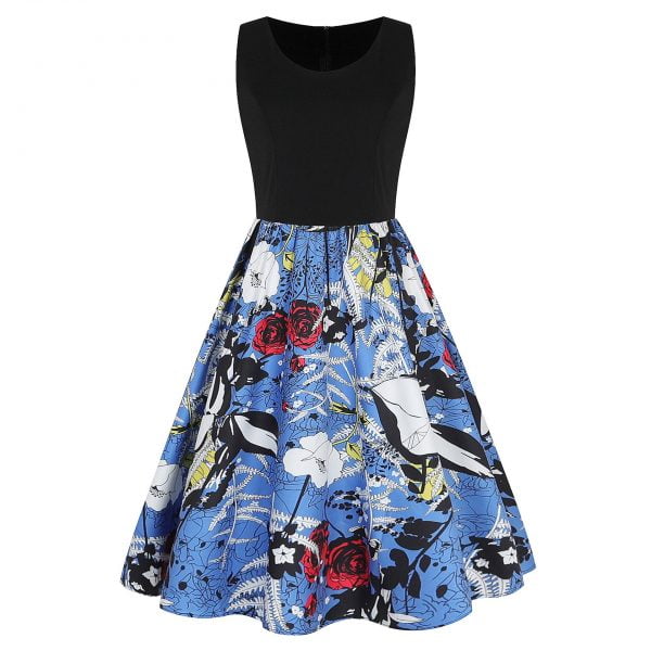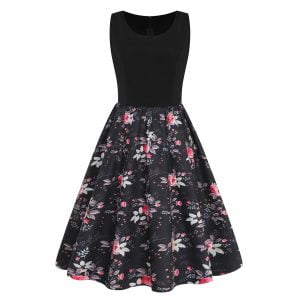 Women’s Swing Dress Sleeveless Knee Length Floral Dress