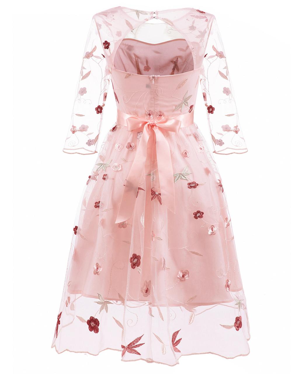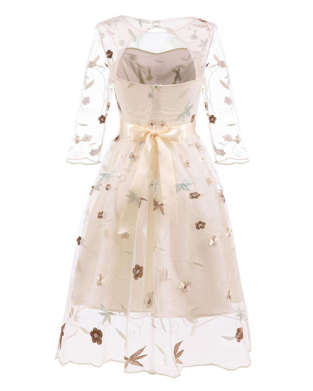 Women’s Tea Dress Flower Embroidered 1950s Rockabilly Lace Swing Dress