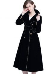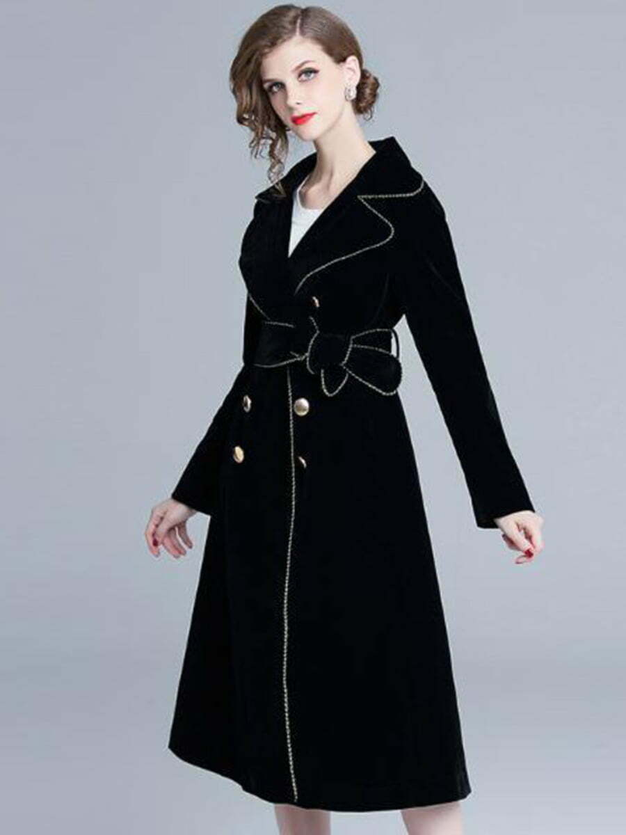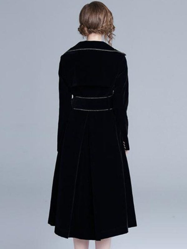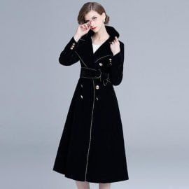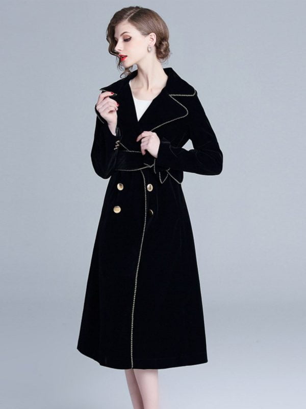 Women’s Trench Coats Double Breasted Lapel Long Sleeve Gold Trim Velvet Jackets