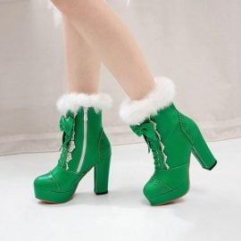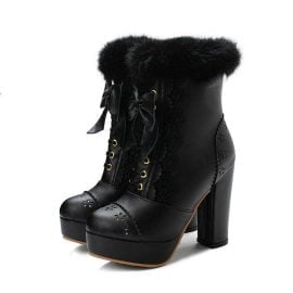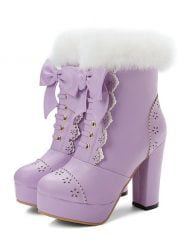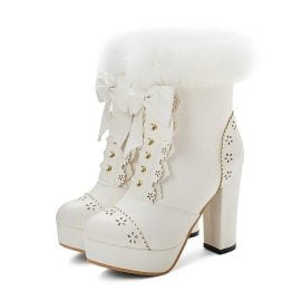 Women’s Boots Bowknot Fur Platform Zipper High Heel Ankle Boots