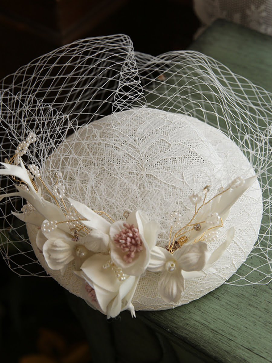 Women’s Vintage Hat Bead Floral Net Fascinator Hat For Wedding