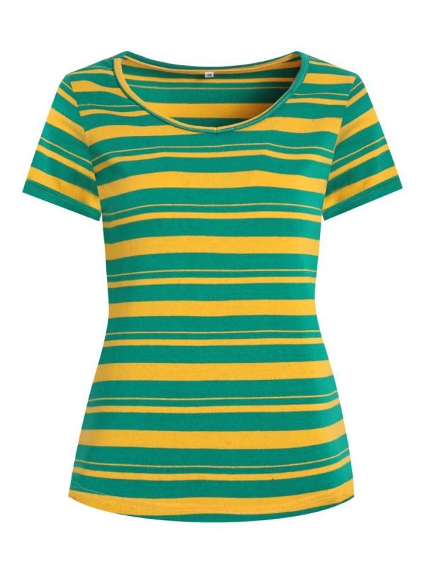 Women’s Vintage T Shirt Striped Short Sleeve O Neck Top