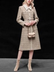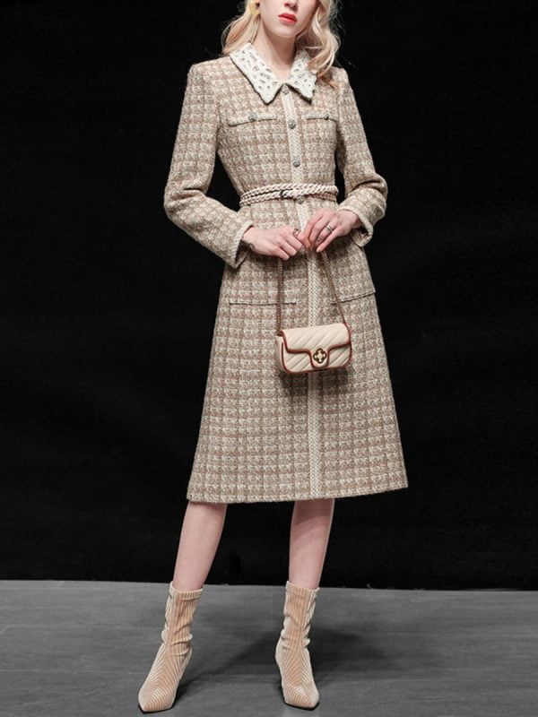 Women’s Winter Dress Lapel Long Sleeve Single Breasted Vintage Dress