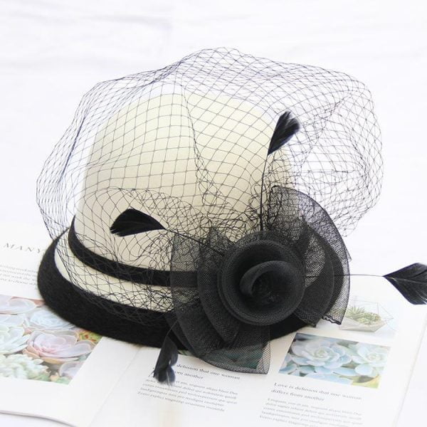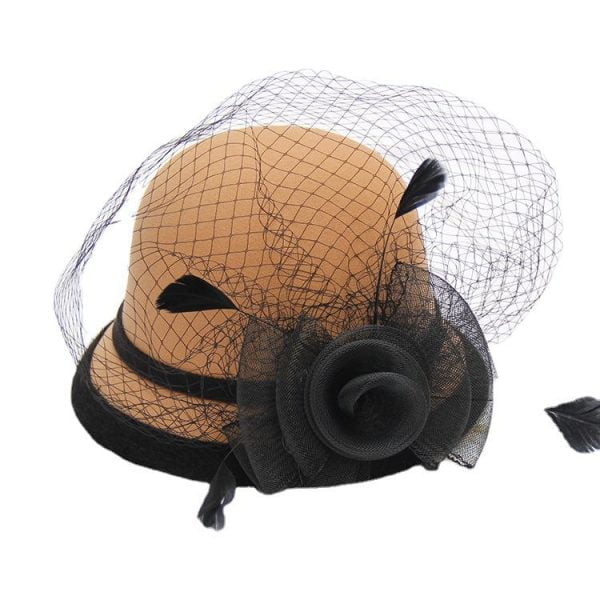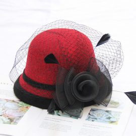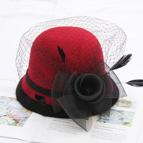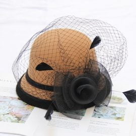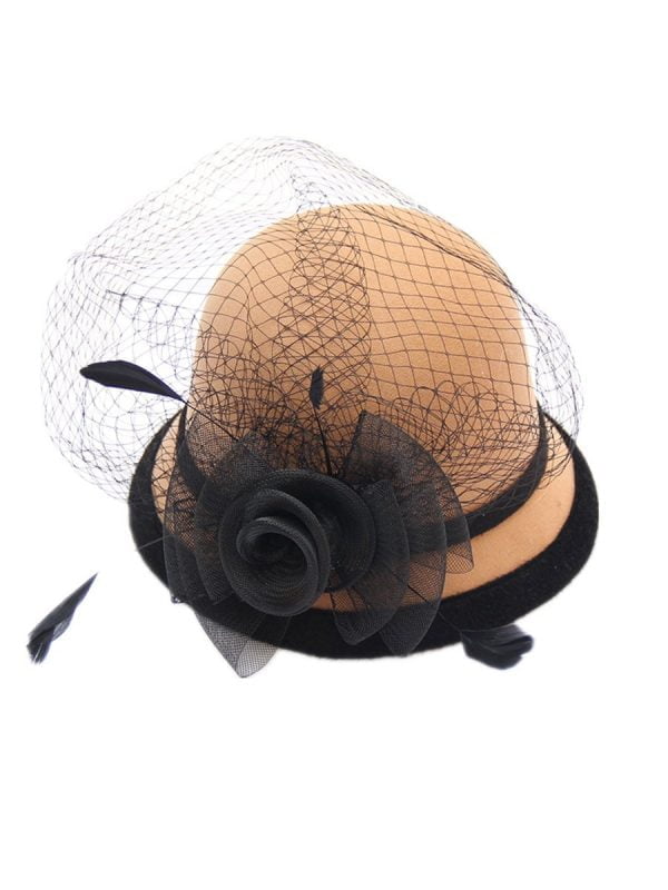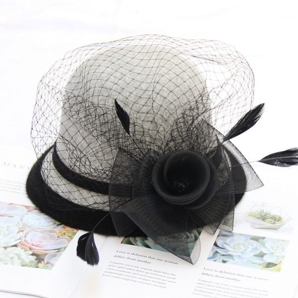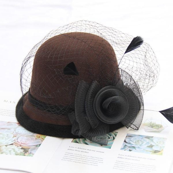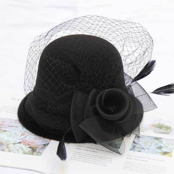 Women’s Wool Hats Feather Mesh Flower Retro Top Bucket Hats