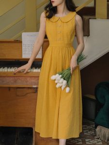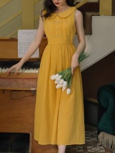Yellow Peter Pan Collar Vintage 1950S Dress With Back Bowknot