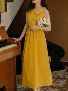 yellow-peter-pan-collar-vintage-1950s-dress-with-back-bowknot